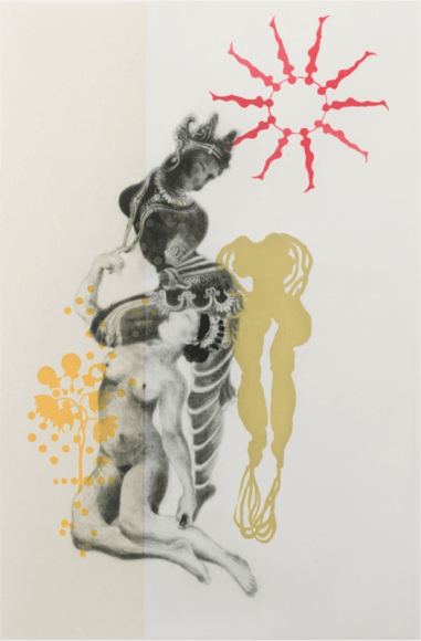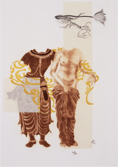 Aquatint with sugarlift spit bite, dry point chine colle