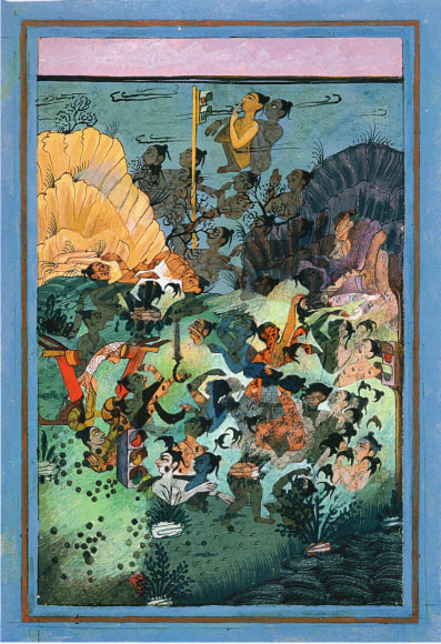 Vegetable color, dry pigment, watercolor, and tea on hand-prepared wasli paper